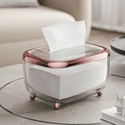 The box is designed to hold standard-sized tissue boxes, ensuring easy access and organization.